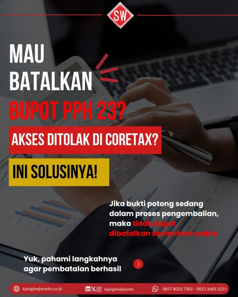 Dengan demikian, penolakan akses pada sistem Coretax tidak serta-merta menutup peluang pembatalan bupot PPh 23. Wajib pajak tetap dapat menempuh mekanisme pembatalan sesuai syarat dalam PER-11/PJ/2025, termasuk berkoordinasi dengan Kring Pajak atau kanal administrasi DJP lainnya apabila mengalami kendala teknis.
