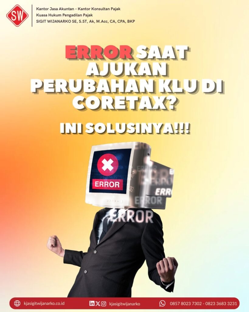Dengan memastikan tidak ada permohonan yang masih terbuka di Coretax, wajib pajak dapat menghindari kendala error saat melakukan perubahan KLU.