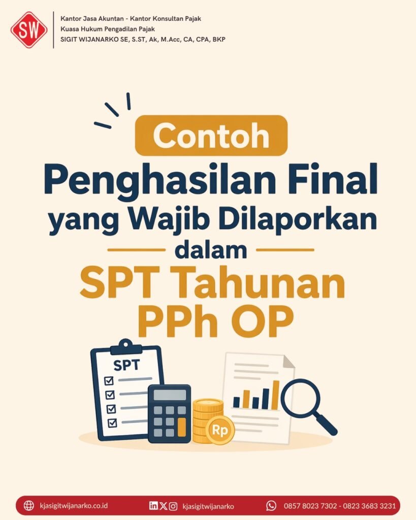 Dengan memahami jenis dan perlakuan penghasilan final, wajib pajak dapat menjalankan kewajiban perpajakan secara lebih tepat, tertib, dan sesuai dengan ketentuan yang berlaku.