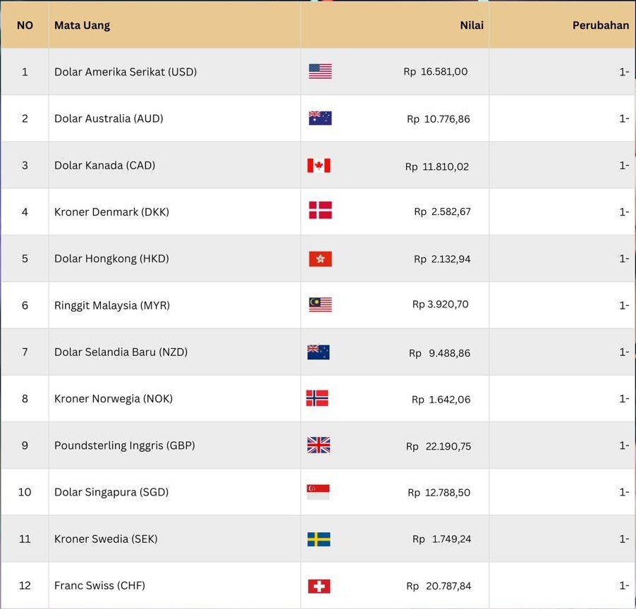 Dalam upaya memastikan keadilan dan transparansi dalam pengenaan biaya dan perpajakan atas barang impor, pemerintah Indonesia kembali mengeluarkan kebijakan penetapan nilai kurs valuta asing untuk periode tertentu. Melalui Keputusan Menteri Keuangan Nomor 21/MK/EF.2/2025, pemerintah menetapkan nilai tukar resmi yang digunakan sebagai dasar pelunasan bea masuk, Pajak Pertambahan Nilai (PPN), Pajak Penjualan atas Barang Mewah (PPnBM), bea keluar, dan Pajak Penghasilan terkait pemasukan barang impor selama periode 22 Oktober 2025 sampai 28 Oktober 2025.