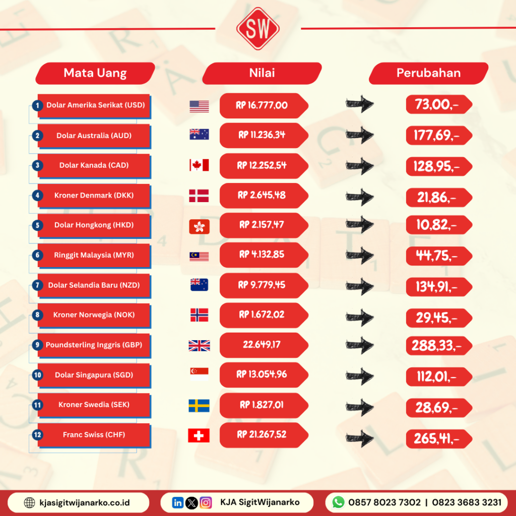 Perubahan nilai kurs valuta asing kembali diberlakukan oleh pemerintah Indonesia melalui Keputusan Menteri Keuangan Nomor 31/MK/EF.2/2025 yang berlaku dari tanggal 31 Desember 2025 sampai dengan 06 Januari 2026. Kebijakan ini menetapkan nilai tukar mata uang asing sebagai dasar pelunasan Bea Masuk, Pajak Pertambahan Nilai Barang dan Jasa (PPN), Pajak Penjualan atas Barang Mewah (PPnBM), Bea Keluar, dan Pajak Penghasilan atas Pemasukan Barang.