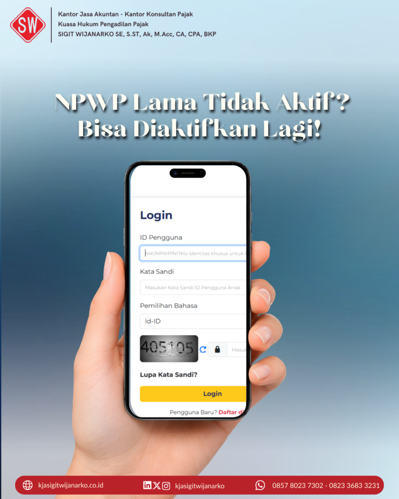 Dengan adanya kemudahan layanan dari DJP, wajib pajak yang sebelumnya nonaktif tetap dapat mengaktifkan kembali NPWP tanpa harus membuat nomor baru.