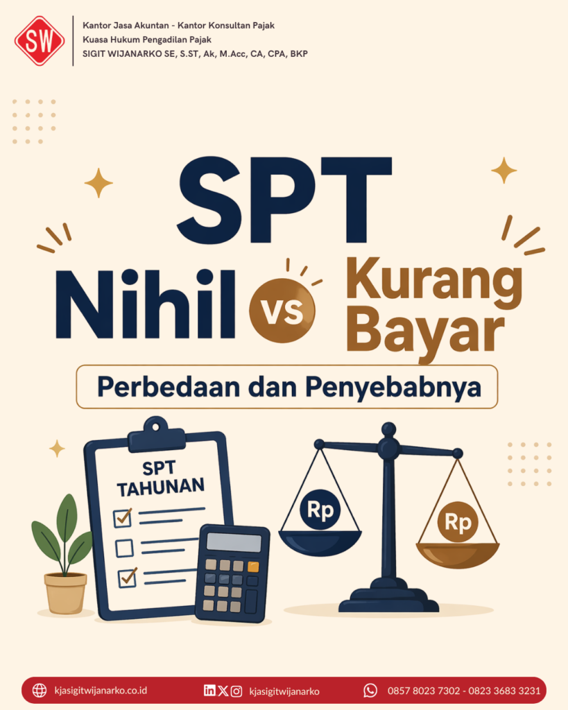 Hasil perbandingan ini akan menunjukkan apakah SPT berstatus nihil atau kurang bayar.