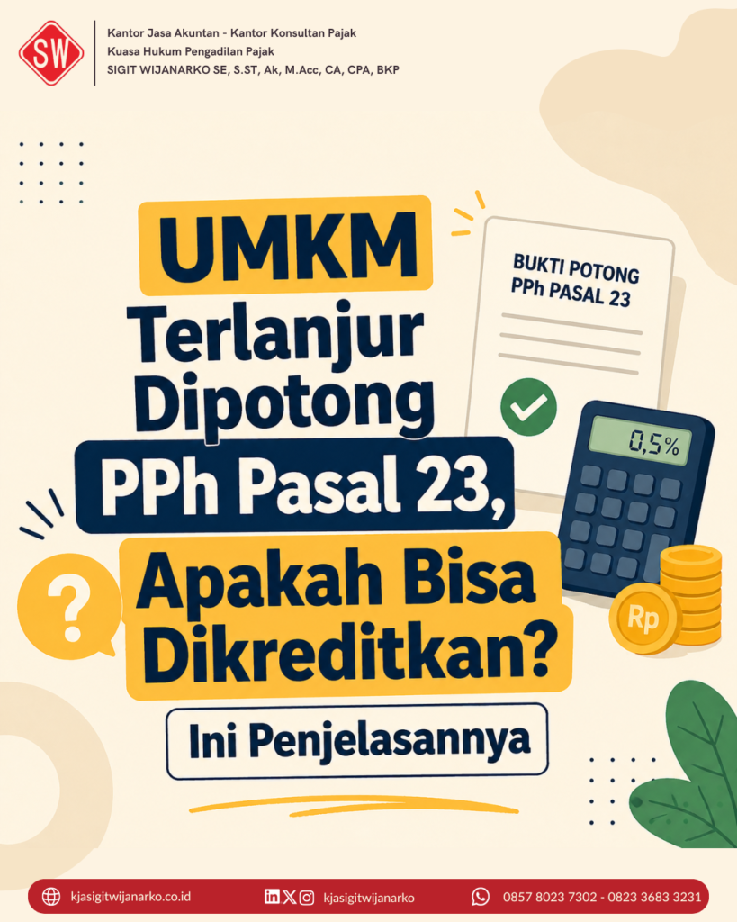Wajib pajak badan berstatus UMKM yang dikenai PPh Final 0,5% masih dimungkinkan mengalami pemotongan PPh Pasal 23 oleh lawan transaksi. Jika kondisi ini terjadi, bukti potong PPh 23 yang sudah diterbitkan tetap dapat dimanfaatkan sebagai kredit pajak dalam pelaporan SPT Tahunan.